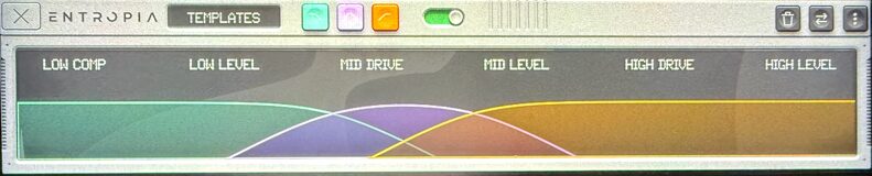 「TEMPLATES」は、あらかじめプリセットとして登録されている6つのEQの設定から選択するものです。