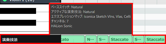 なお、エディター内の演奏技法にマウスオーバーすると、ポップアップが表示されて詳細な情報を確認することができます。